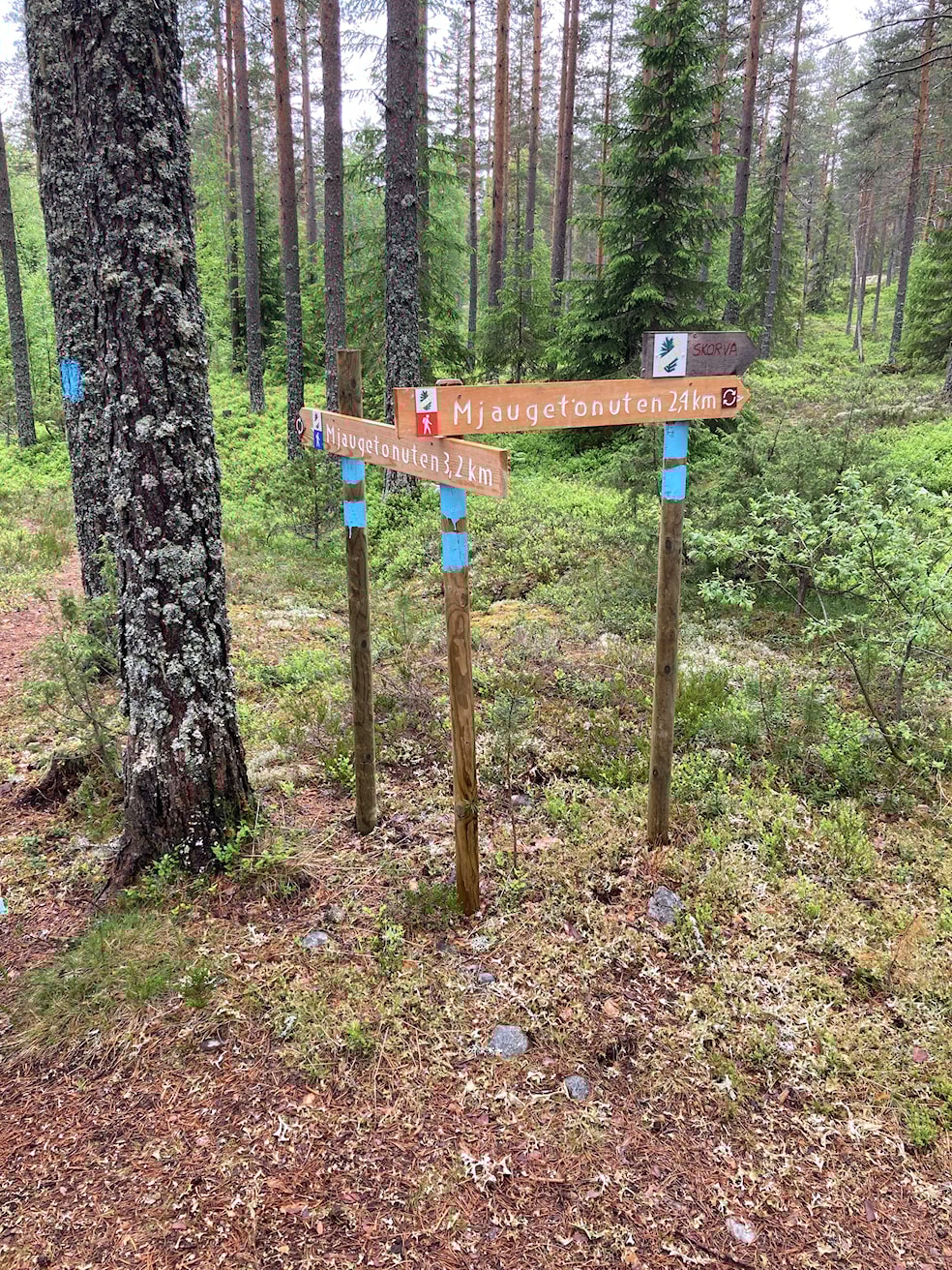 Stien mot Mjaugetonuten fra velteplassen går langs gamle gangveg til Mjaugeto, som nå er rydda og merka. Denne traseen er ikke så bratt, men det er ingen skikkelige utsiktspunkter før man når toppen.